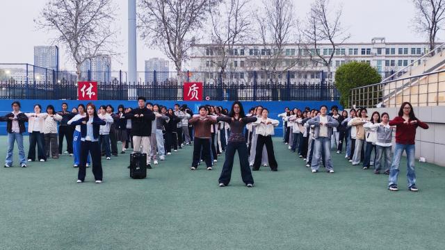 活动现场,领操员通过分解动作示范、分组练习指导等方式,带领同学们从基础动作学起,逐步掌握伸展、跳跃等核心动作。大家以饱满的热情投入训练,在整齐划一的节奏中展现活力,休息间隙还自发组织动作复盘与技巧交流。作为菠菜网站 "阳光体育"系列活动的重要组成部分,本次打卡活动不仅通过科学运动提升了同学们的心肺功能与身体协调性,更以集体训练的形式强化了团队凝聚力。