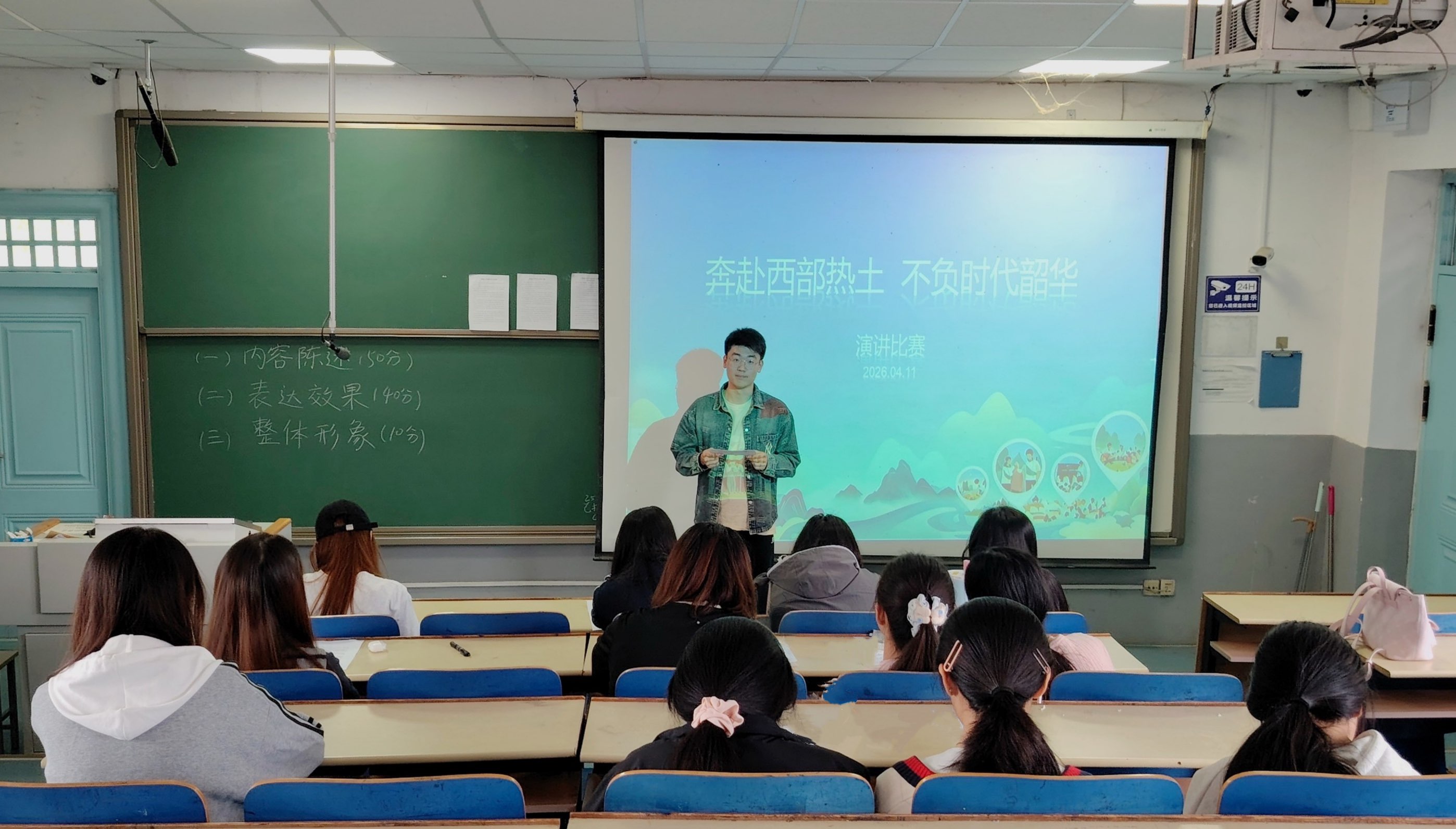 为引导同学们深入了解西部计划,厚植家国情怀,丰富校园文化生活,搭建青年展示自我、交流思想的平台, 4月11日,菠菜网站-菠菜资讯网 在4#A124教室举办“奔赴西部热土 不负时代韶华”主题演讲比赛。
