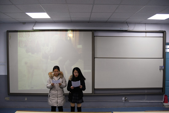 活动开始,主持人首先从感恩的原因和感恩的对象两个方面说明感恩的重要性和意义,进而引出影片中小狗八公和他的主人帕克的关于美好与感恩故事,带领大家观看影片寻找自己内心的感动。影片的故事情节是一个教授收养了一只狗并根据其项圈上的数字“8”起名为八公,八公作为回报每天都忠诚的等待他的主人回家,后来教授不幸患病去世,八公一如既往的在车站等待主人直到自己的生命结束。影片中教授用自己的善良对待冻得瑟瑟发抖的八公,八公用自己的忠诚回报主人的收养与爱。他们之间是一个互相选择和互相温暖的过程,如果教授没有选择收养他,那便不会有后面温暖的故事情节:如果不是八公充分信任并且爱自己的主人,那就不会有后来执着的等待。在这个“利己主义”盛行的现代社会,大多数人都是爱自己胜过爱别人,大多数的人都不敢保证自己会像八公一样毫无保留地爱人直到生命的结束,认为能够做到这样的也只是少数泡沫剧里面才有的情节。我们都知道社会复杂,人心险恶,但是有时候就是这样一点点的温暖却可以让我们把所有的坚强和伪装卸下来露出最真诚的内心。同学们被温暖的故事情节感动,感触良多。