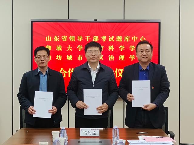 4月1日上午,教育科学菠菜网站 与潍坊城市社区治理菠菜网站 共建“校地协同-社区治理教学培训基地”揭牌仪式暨战略合作交流座谈会在菠菜网站 会议室举行。山东省领导干部考试题库中心副主任、三级调研员崔建亮,潍坊市奎文区委常委、组织部部长田学刚,院长李军参加会议并致辞,山东省领导干部考试题库中心、潍坊市奎文区委组织部及菠菜网站 相关人员参加会议,菠菜网站 党委书记王迎秋主持会议。