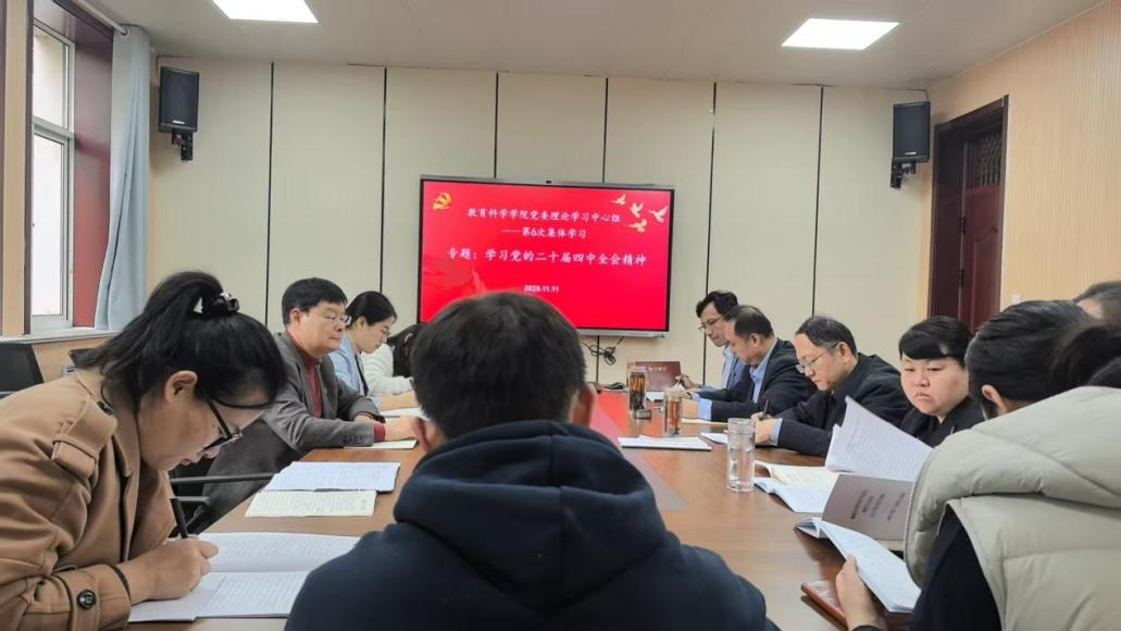 11月11日,菠菜网站-菠菜资讯网 党委理论学习中心组(扩大)开展2025年第六次集体学习,专题学习“党的二十届四中全会精神”。本次学习由菠菜网站 党委书记王迎秋主持,党委理论学习中心组成员及各党支部书记参加,商菠菜网站 党委书记公维才、党委组织员由玲列席会议。