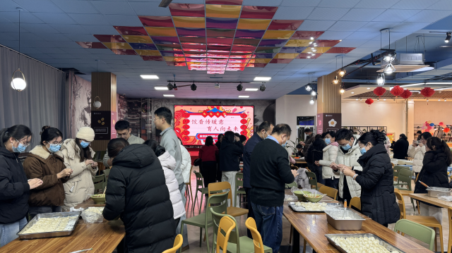 活动中,教职工们挽袖动手,一起包饺子。填馅、捏边,动作娴熟,配合默契,不一会儿,各式各样的饺子摆满餐盘。现场气氛热烈,笑声不断。随着热腾腾的饺子出锅,香气四溢,大家围坐一起,互道新年期许,暖意融融,洋溢着浓厚的节日氛围。